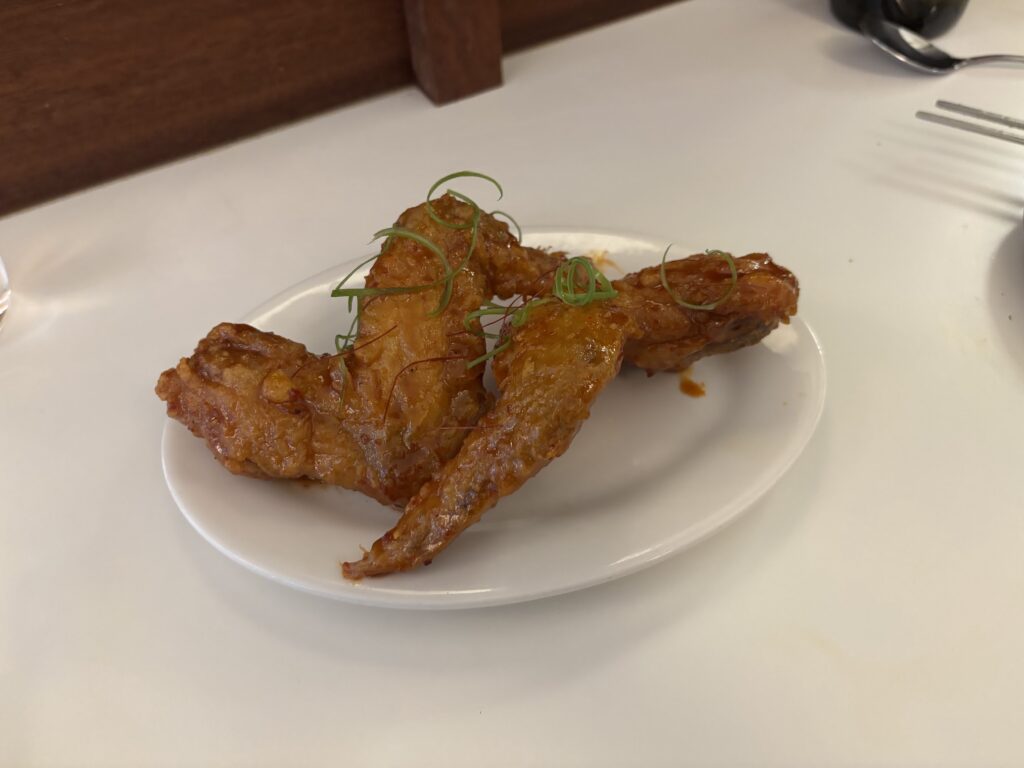 Glazed Korean fried wings glazed arrive limbs intertwined in post-coital sleep. They shatter, they give, they’re gone in seconds.