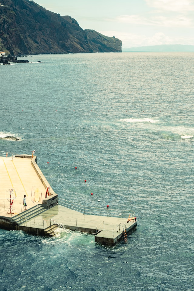 Just beyond the fort, the Barreirinha Bathing Complex is built against a rocky cliff overlooking Funchal’s bay. It’s the closest swim to the city centre and a good reason to pack a towel in your bag for the morning. The Blue Flag complex has sea access via ladders and a small pebble beach, a solarium, changing rooms, showers, lockers, and a bar for post-dip coffee. It opens at 09:30 in winter and 08:30 in summer, so an early start at the market followed by a walk through the Old Town puts you here at the right time. Even a brief swim sharpens the appetite for what comes next.