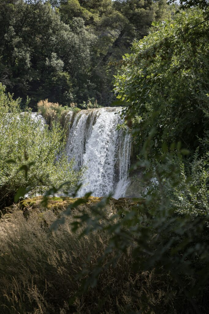 Krka National Park is just 30 minutes inland and makes for an easy half-day trip if you can stretch your stay. The park centres on the Krka River and its series of travertine waterfalls, including Skradinski Buk – 17 cascades tumbling over 800 metres, the largest travertine waterfall system in Europe. Swimming is permitted in designated areas from June to September, though be warned: the park caps visitor numbers at Skradinski Buk to 10,000 at a time, so summer mornings can feel crowded.