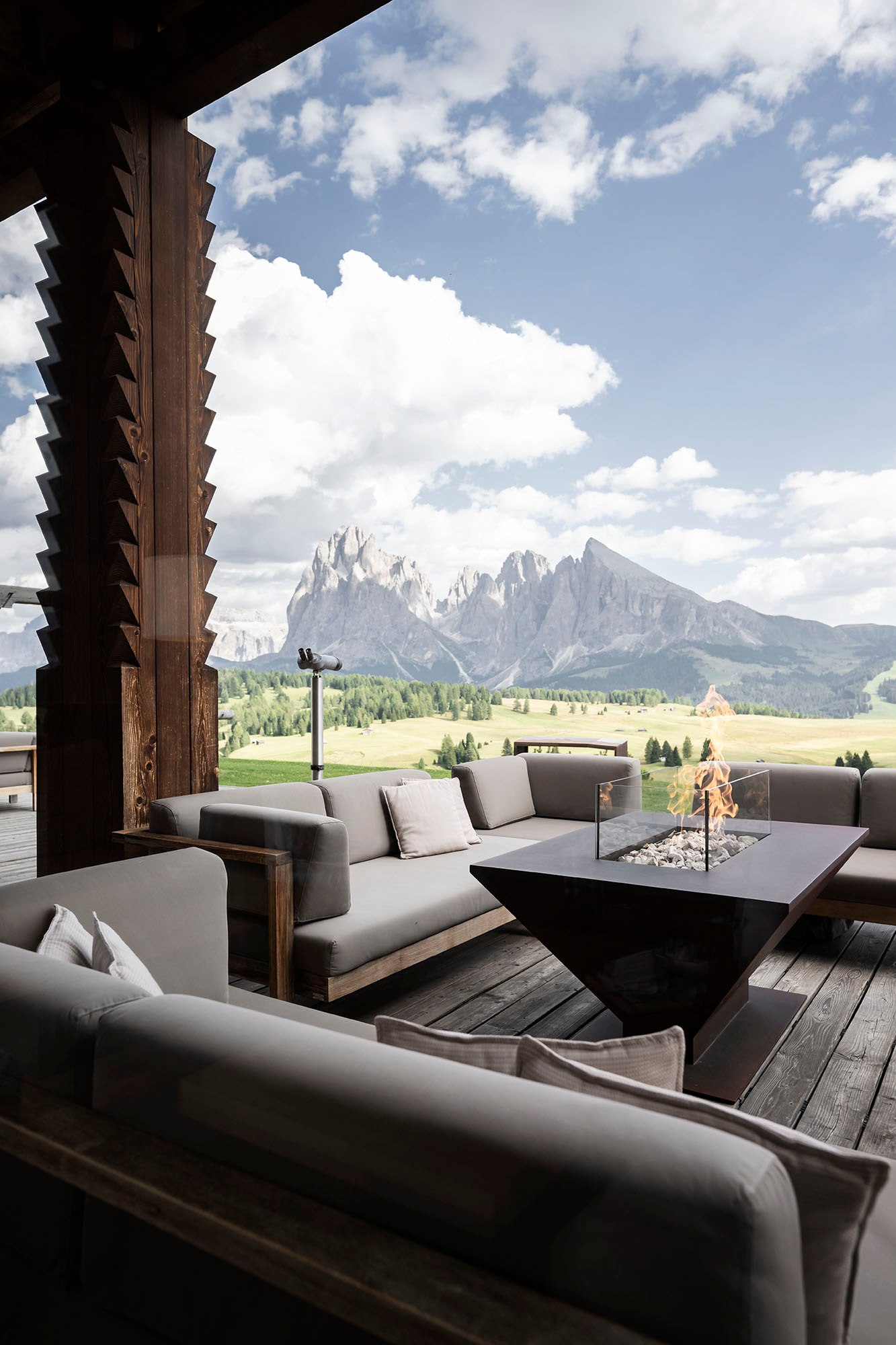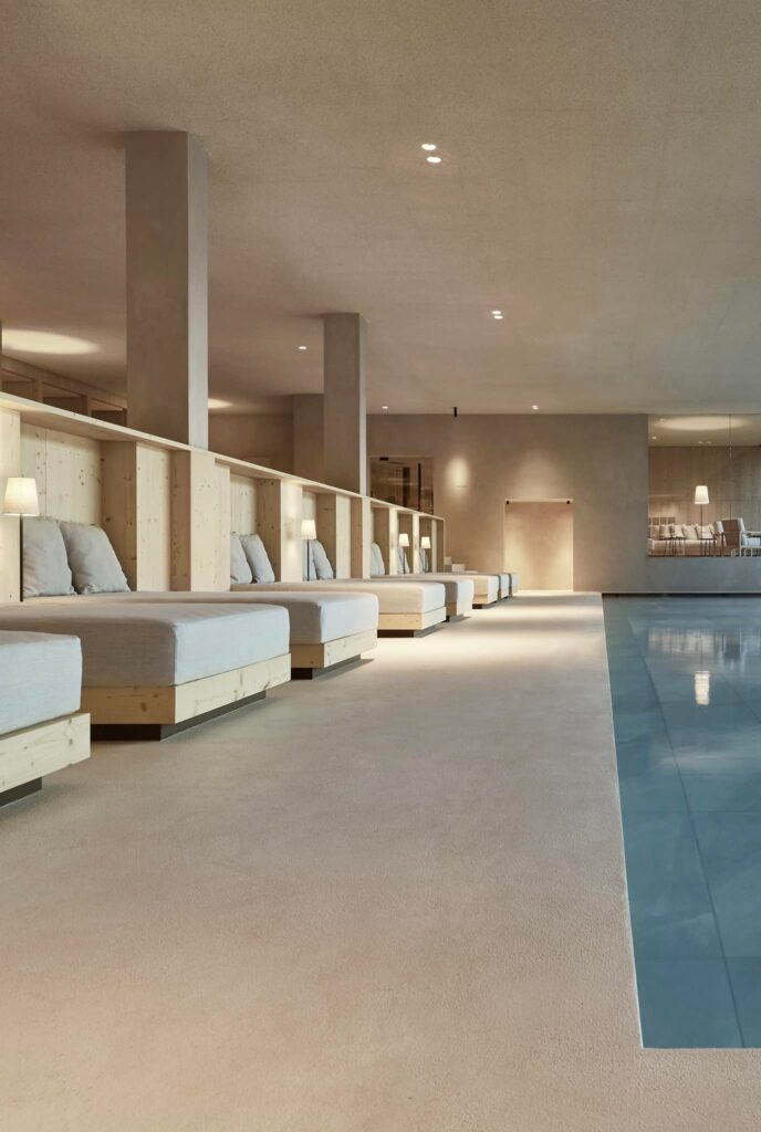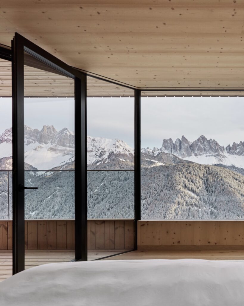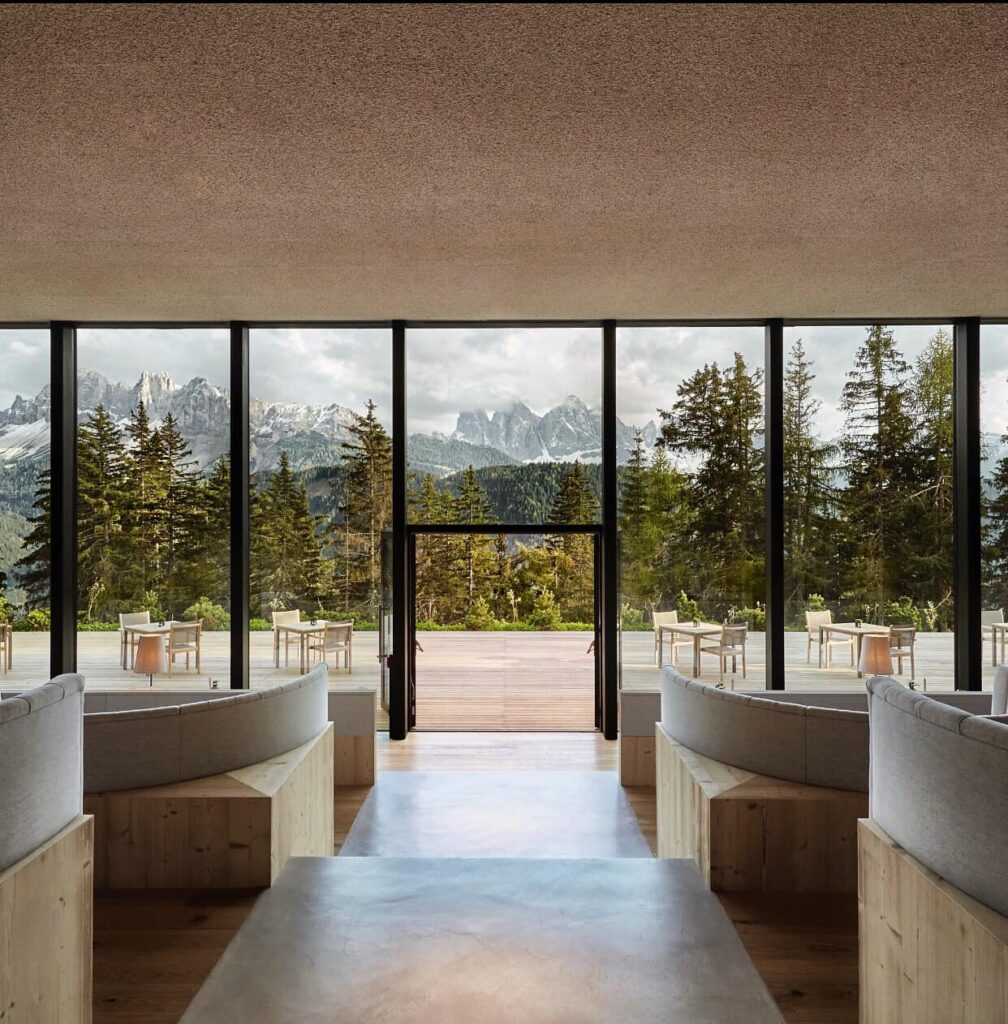 At 1,800 metres, Forestis sits higher than any other property on this list. On days when cloud settles below the treeline, the hotel floats above it. From the valley floor it looks less like somewhere you check in and more like somewhere you end up if you’ve been particularly well behaved. That altitude also brings a microclimate milder than it has any right to be, where Adriatic and northern air currents converge, and Plose spring water filters through dolomite rock to emerge with unusual purity. It’s a special site, and it was identified as such long before the hotel existed.