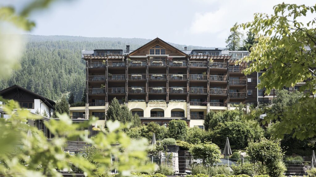 The suites are light-filled and south-facing, with balconies overlooking the Dolomites, and the decor throughout is calm and minimal. The Sanoner family, who have owned the Adler since 1810 (now in their sixth generation), position Balance as a place where relaxation is not an end in itself but a component of measurable health improvement. For guests who want their wellness stay to produce tangible results – better sleep metrics, adjusted nutrition plans, baseline diagnostics – this is the most focused option in the area.