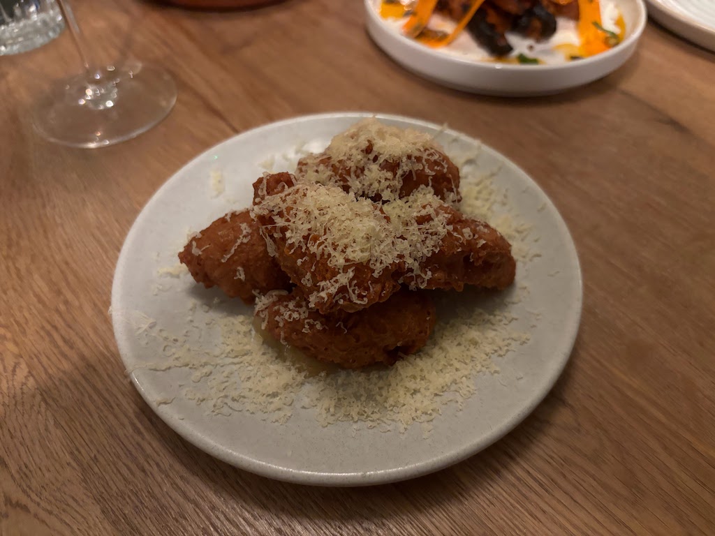 The menu comprises a handful of snacks and starters and a couple of larger plates, with the cheddar fritters from the former section already reaching something close to cult status. It’s easy to see why; pillowy, giving and nestled under blankets of finely grated local cheese, they are seriously, seriously addictive. One plate simply isn’t enough.