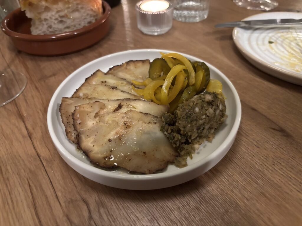 Back in the room and eyes on the menu, and it’s not perhaps quite as Francophile as the restaurant’s name suggests, with gochujang mayonnaise, curried lentils, chimichurri and a whole host of other apparent interlopers making their way onto the table. That mayo forms part of a very agreeable starter, in fact, bringing vigour and succour to slices of ox tongue.