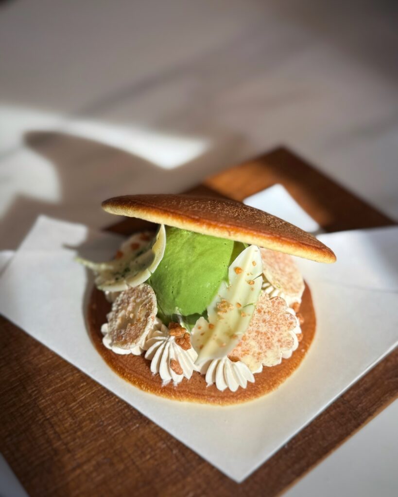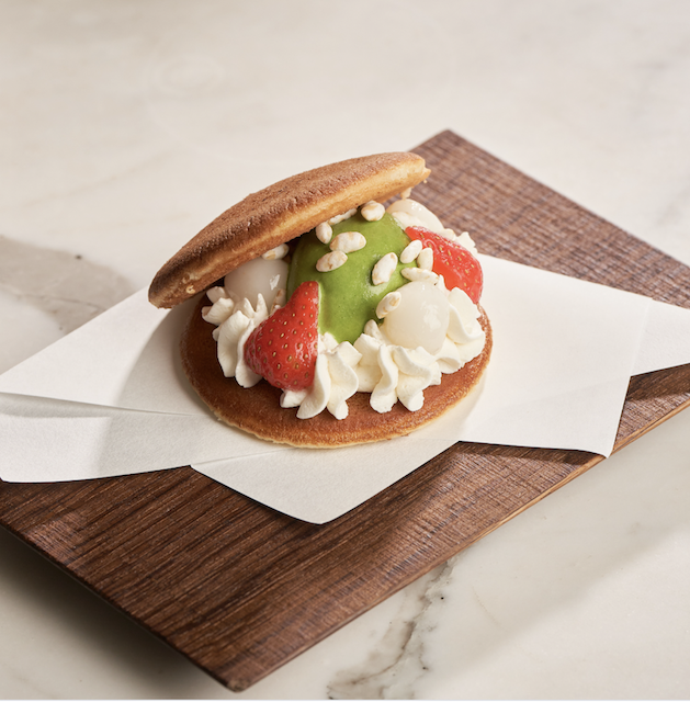 These Japanese pancakes take weeks to develop; the batter alone required three weeks to perfect in the r&d phase. The result is impossibly light and fluffy, a cloud-like vessel for some thoughtful fillings. The Matcha and Jasmine Dorayaki is a thing of quiet beauty. Velvety matcha and jasmine tea white chocolate ice cream sits between ethereal pancakes, finished with kuromitsu Chantilly and genmai white chocolate crunch.
