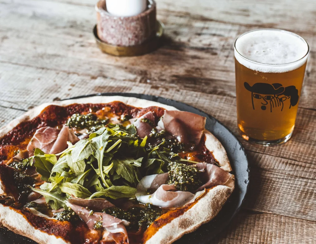 Wine is treated as seriously as the pizza. Danilo, a trained sommelier, travels directly to Italian vineyards to select bottles from small, independent producers. One pairing worth asking about: the pizza with guanciale, caramelised red onions, smoked scamorza and fresh apple slices, matched with a Frappato di Vittoria or Etna Rosso. The light acidity and gentle tannins work against the richness of the pork and smoke.