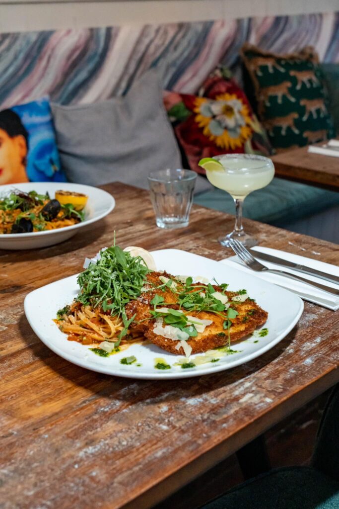 Later in the day, the menu shifts gear. Small, nourishing plates like roast squash with carrot and turmeric hummus make wholesome companions to their well-crafted cocktails (the house spritz, at £9, is particularly good value). More substantial dishes such as their chicken schnitzel with caper butter demonstrate the kitchen’s ability to handle classics with care and an unpretentious lack of frippery.