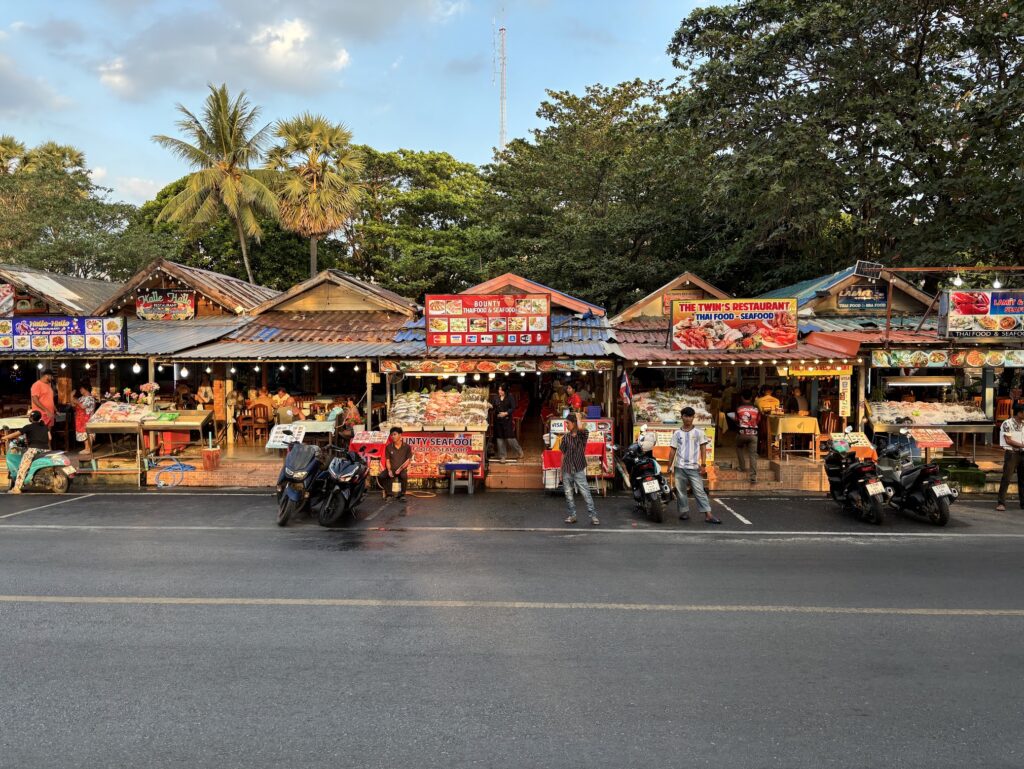 A six-minute stroll along the beach brings you to Tann Beach Club, a nicer spot by day than night, depending on what you’re after. A short walk in the other direction leads to The Pad Thai Shop, where locals and tourists rub shoulders over generous bowls of noodles. It’s worth seeking out.