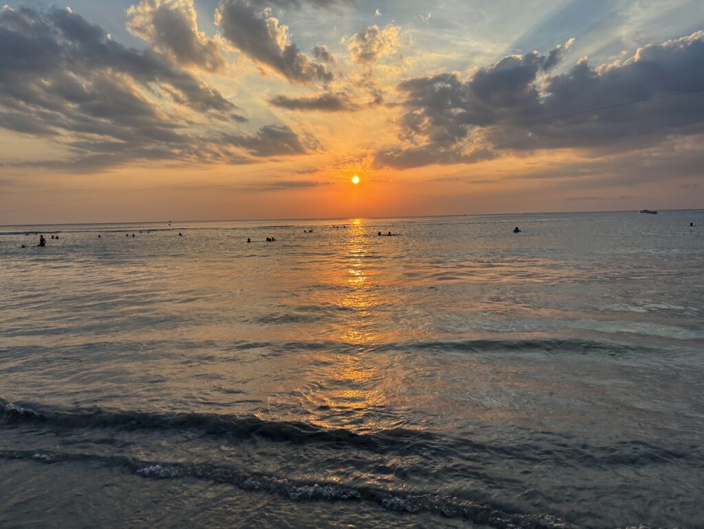 Come evening, the beach crowds swell as folk come to soak up the sunset. Speedboats pull up along the beach offering parasailing – the locals who crew them make it look effortless, though it’s back-breaking work. Despite this, because of the breadth of the beach, you can still find your own little spot to watch mercury descend.