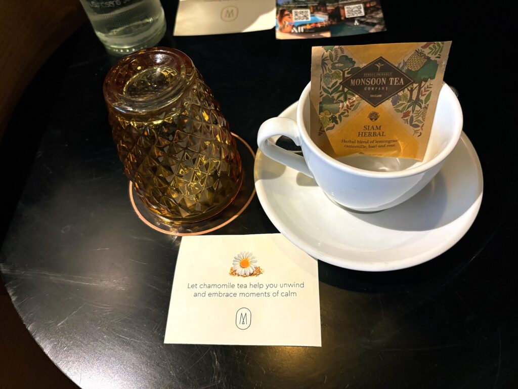 The coffee pods are no standard hotel fare, either. Made from premium Northern Thai beans, the options run from ristretto (a bold blend of robusta and arabica) to cremoso (medium-roasted Doi Tun beans with fruit and caramel notes) and a decaf medium-roast arabica. At turndown, the hotel leaves a bedtime folktale and Siam herbal tea from the Thai Monsoon Tea Company – a blend of lemongrass, chamomile, bael and rose. Bael is a traditional herb widely drunk in Buddhist monasteries. You’ll sleep very well after one of these, though, honestly, you’ll sleep very well anyway.