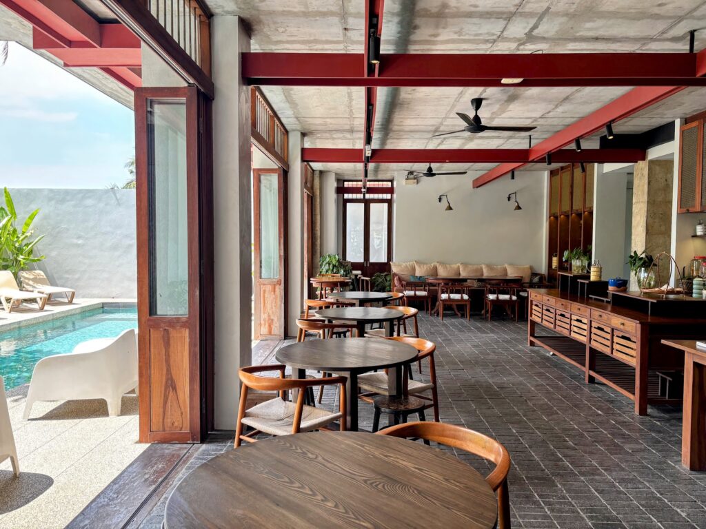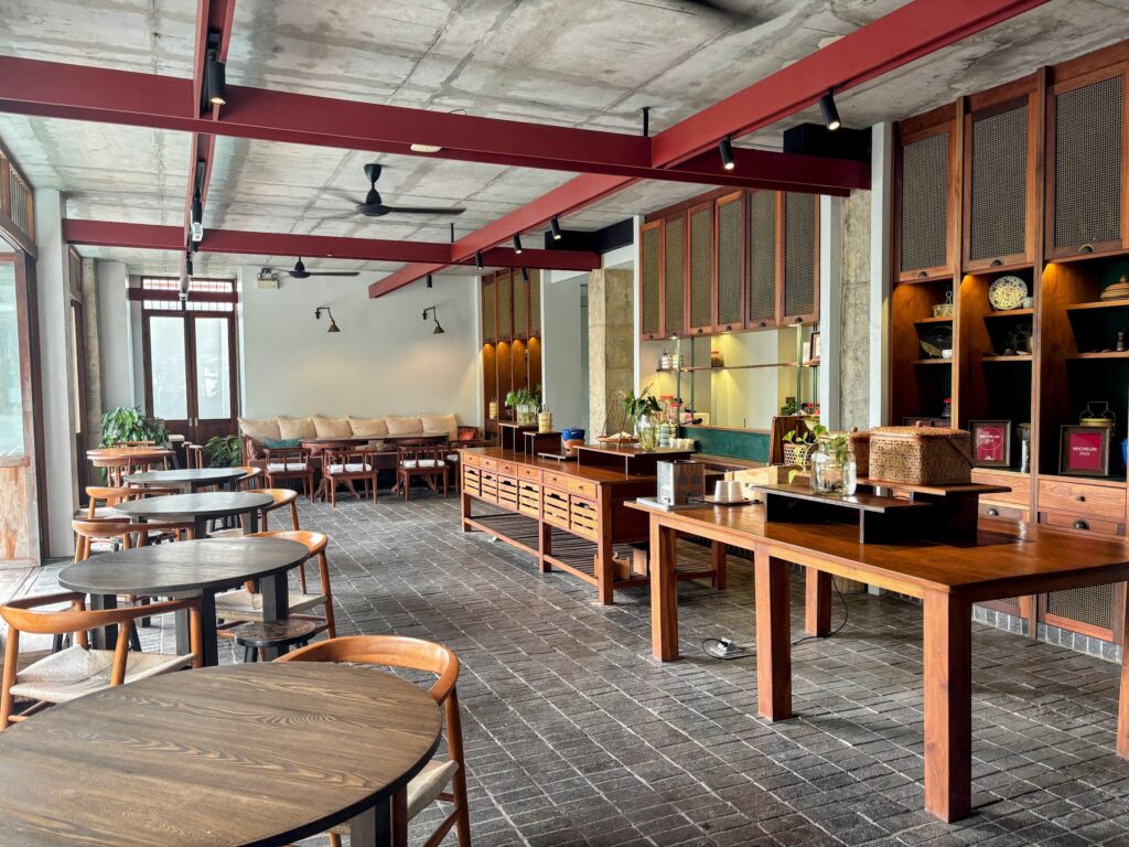 At Hotel Gahn the dining room is the heart of the hotel. It’s where the hotel breakfast is laid out each morning and where Juumpo serves lunch and dinner, open to the small pool on one side through tall timber-framed doors, the reception and the café counter on another. There’s no threshold to cross. You drift between them. It gives the whole property an easy, domestic rhythm – the kind you associate with staying with family. You start to fantasise about living here, reading the Sunday paper while your adopted Nyonya grandma whips you up something implausibly complex with such grace that you enter a flow state and finish the crossword with ease.