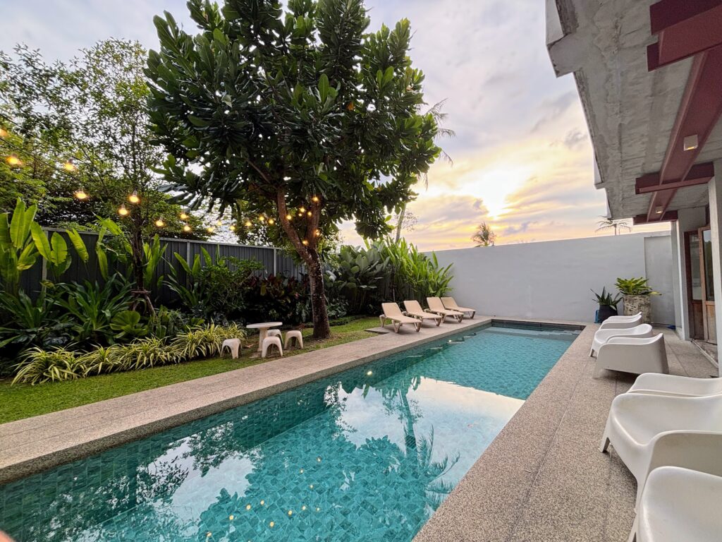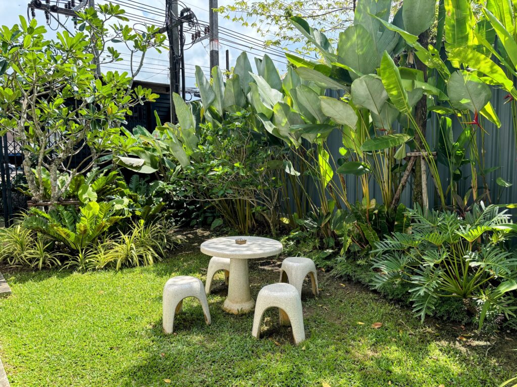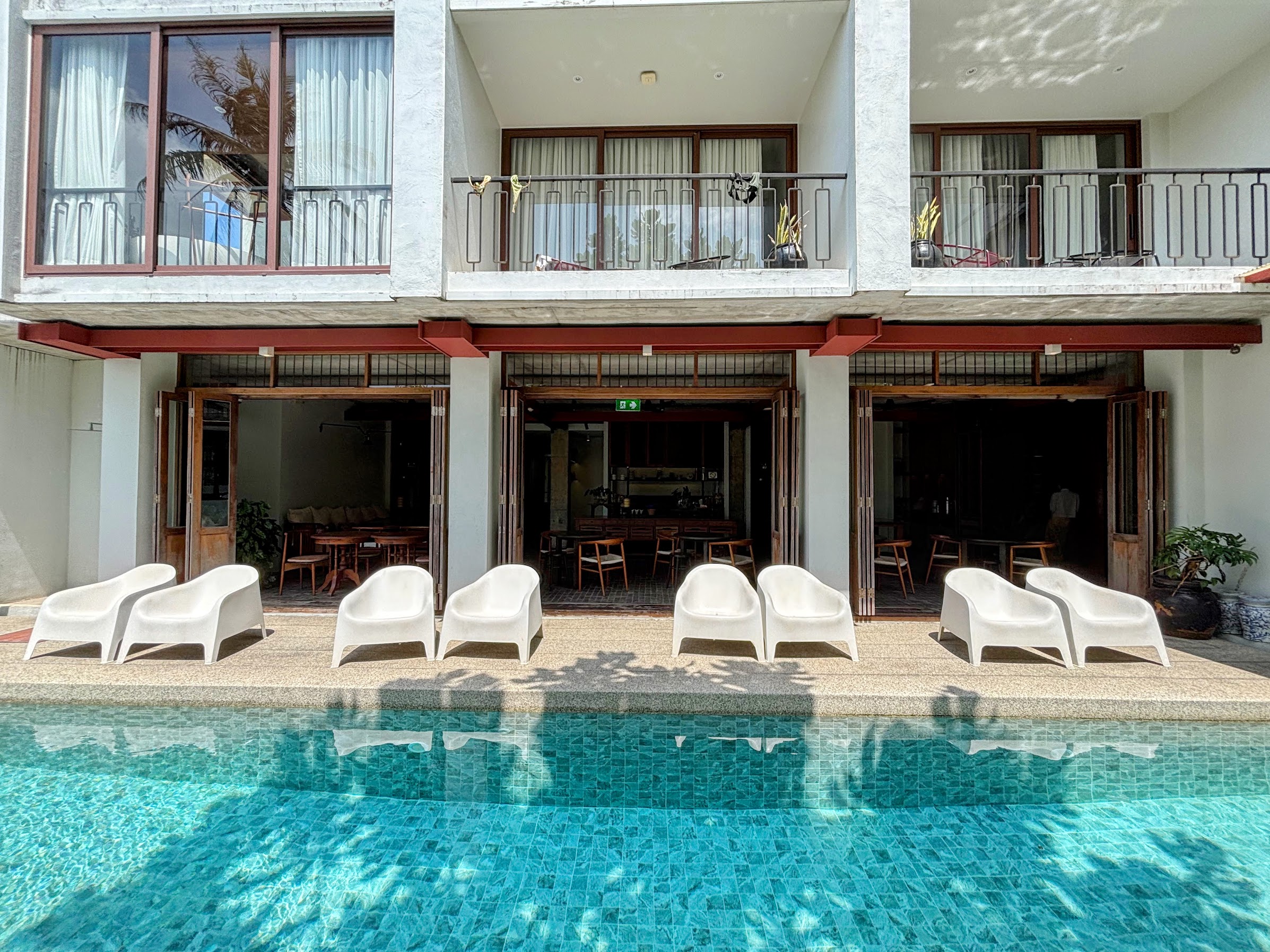 It’s a chilled spot to hang out, with a handful of deck chairs arranged around the pool beneath the shade of a large sea almond tree – its broad, rounded leaves doing useful work in the Andaman heat. It’s not a resort pool built for spectacle, but it’s genuinely pleasant, and the small garden surrounding is a lovely place to spend the afternoon. In the evening the garden is lit up with fairy lights, which creates a twinkling little spectacle that the restaurant overlooks.