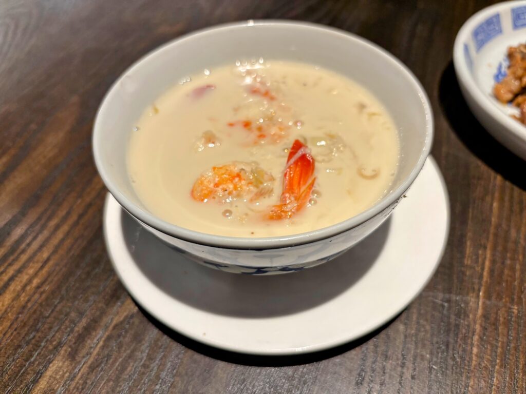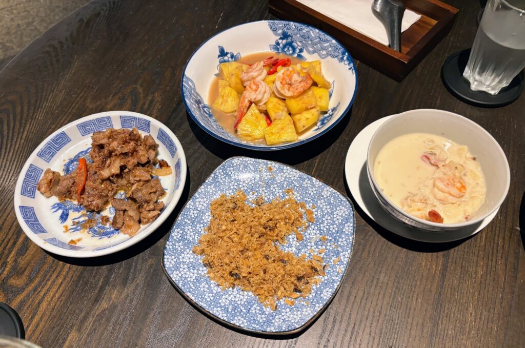 It’s a dish worth travelling for. As is the Baba-style coconut milk soup with shrimp and herbs. The coconut milk had that first-press quality – no soap-tinge, a faint nuttiness – that suggests someone had wrestled with a rabbit earlier in the day. The seasoning was reticent in a way that distinguishes the repertoire from the more bold Thai soups you’ll find out the door. Neither are necessarily better; just different. Here, the restraint was so in keeping with the dignity of the room that it felt like time had locked into place.