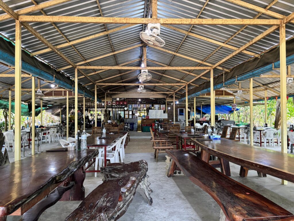 There are some decent food options on this side of Phet Kasem road, including the perennially popular Jim Fiske, the perennially popular Bang Niang night market (which does some superlative crispy pork baked in a massive earthen clay jar – you can’t miss it), and an Isaan restaurant just a minute to the right of Hotel Gahn that doesn’t have a name but lasts long in the memory for its som tam, catfish laab and the rest.