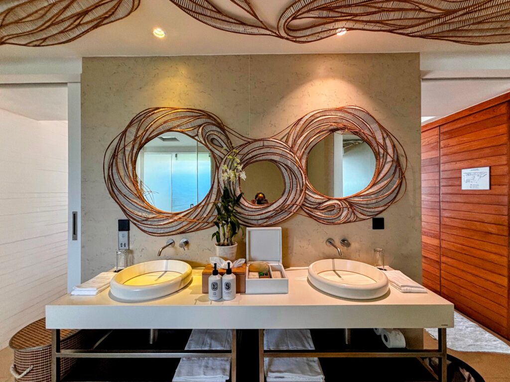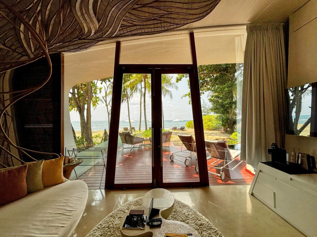 Floor-to-ceiling windows face the sea, and the motorised curtain mechanism is one of those small, satisfying details that lodge in the memory. Talk about a big reveal. A few steps off the deck and you’re on the sand, and close enough to the water for the oceanic white noise to make sleep both immediate and deep (or maybe it was that massive tasting menu and wine flight we’d only finished an hour prior).