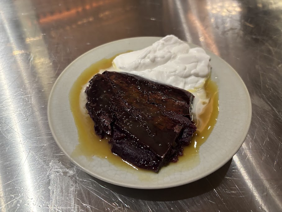 To close, grilled aubergine with coconut cream and shrimp paste blurred the line between savoury and sweet so convincingly that the actual dessert, a roasted Japanese sweet potato with coconut cream, felt almost restrained – and somehow earthier – by comparison. Mix them up – this isn’t a place to be fussing about within the confines of mains and puddings. It’s in the blurred liminal spaces where the real fun happens.