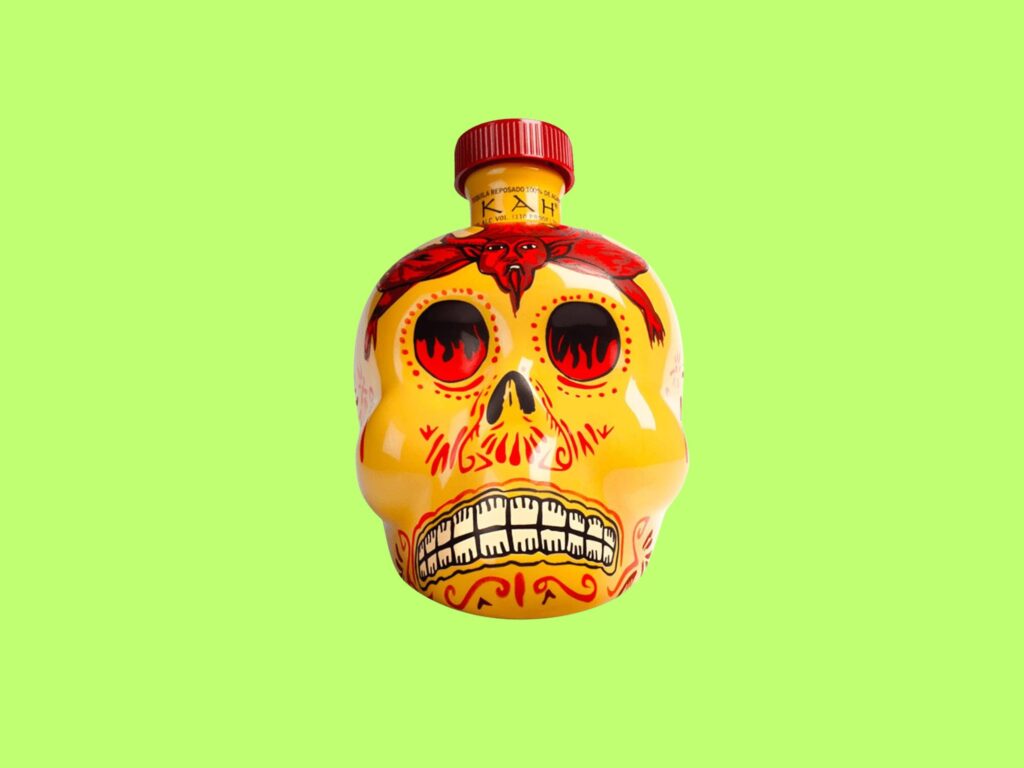 Every bottle of Kah is hand-painted to resemble the sugar skulls used in Día de los Muertos celebrations, meaning no two are identical. The Reposado expression comes in a vivid yellow skull, its design inspired by Peruvian death rituals involving dances and tequila poured on the ground as offerings. Whether or not you’re spiritually inclined, the ceramic vessel is genuinely beautiful in a macabre sort of way.
