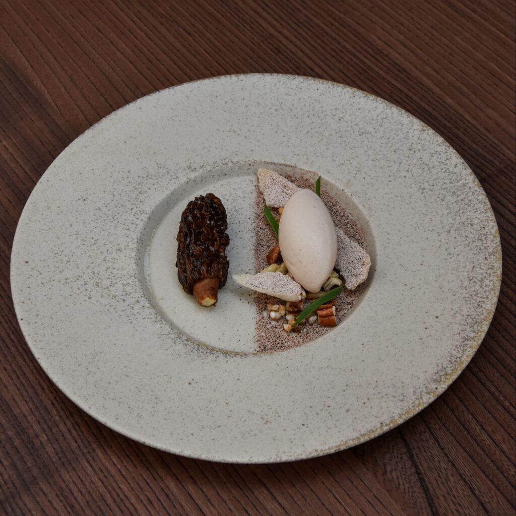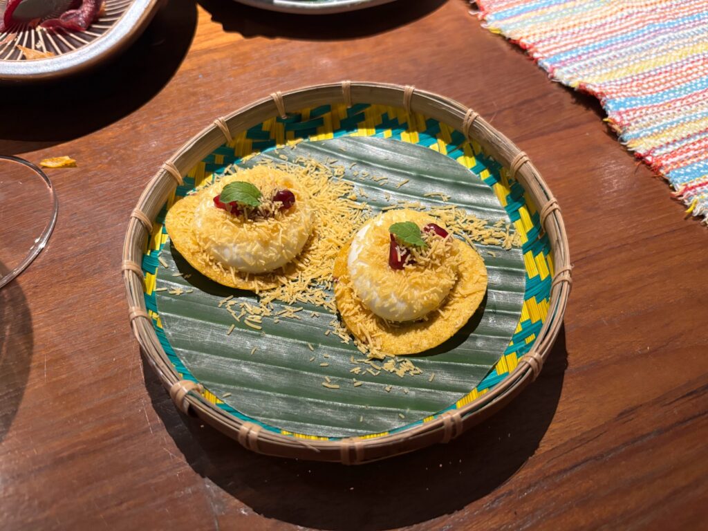 The tasting menu runs to around ten courses, each built around a specific region or moment in Indian culinary history. An early course called Before Chillies reconstructs India’s pre-Portuguese spice profile, using the more ancient heat of long pepper and ginger rather than chilli – a posture familiar to ancient Thai seasoning, too, and a reminder that Indian cuisine carries a thousand different histories within it.