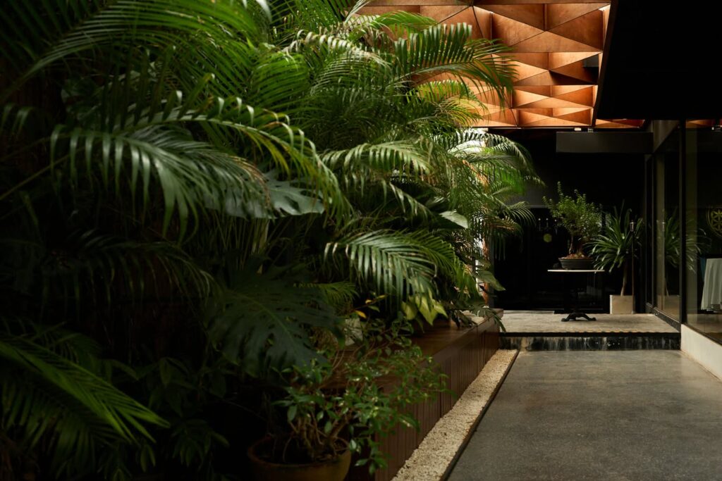 Back in the room, and the restaurant occupies DK’s former home on Sukhumvit Soi 31, a wooden house wrapped in a greenhouse, its interior dim and lush, with strings of lights between seedlings and floor-to-ceiling windows. The food is what DK describes as neo-Indian: historic and pre-colonial recipes reimagined through modern technique, plated with a near-Nordic minimalism that belies how grounded the flavours are in the subcontinent. Of course, all of this is a little tiresome if the food doesn’t deliver. It does.