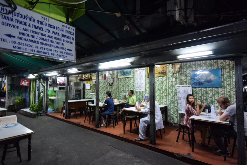 At the other end, Royal India has been feeding Pahurat for over sixty years on seven tables and a cash-only policy. The tasting menus are worth the investment. But so is the chicken masala at Tony’s, eaten on a plastic stool beside a Bangkok canal, with only a fan and Yeh Rishta Kya Kehlata Hai for company.