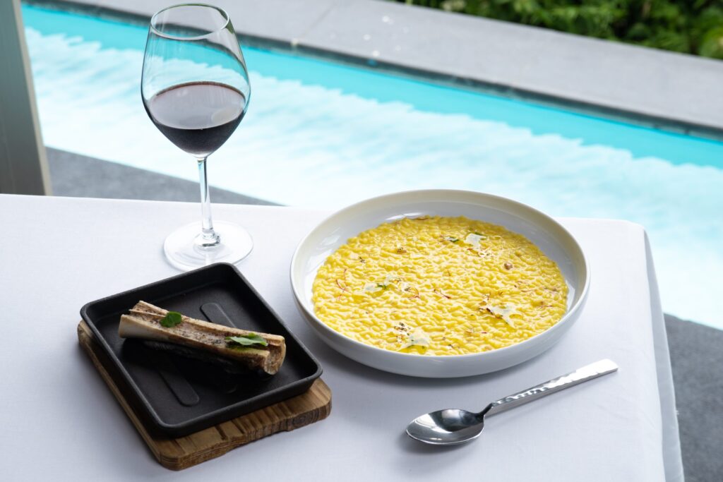 There’s a seriousness to the sourcing here that goes beyond the usual hotel kitchen supply chain, with duck from Klong Phai Farm, fish from a local eco-aquaculture operation and Thai artisan goat cheese from Little Goat Farm in Nakhon Pathom all featuring on the menu. That local influence extends into desserts, with a baba made with Phuket rum – it’s excellent, bracing and boozy, but comforting too. The menu has ambition beyond the island too, taking in handmade agnolotti del plin and a Margaret River Wagyu ribeye.