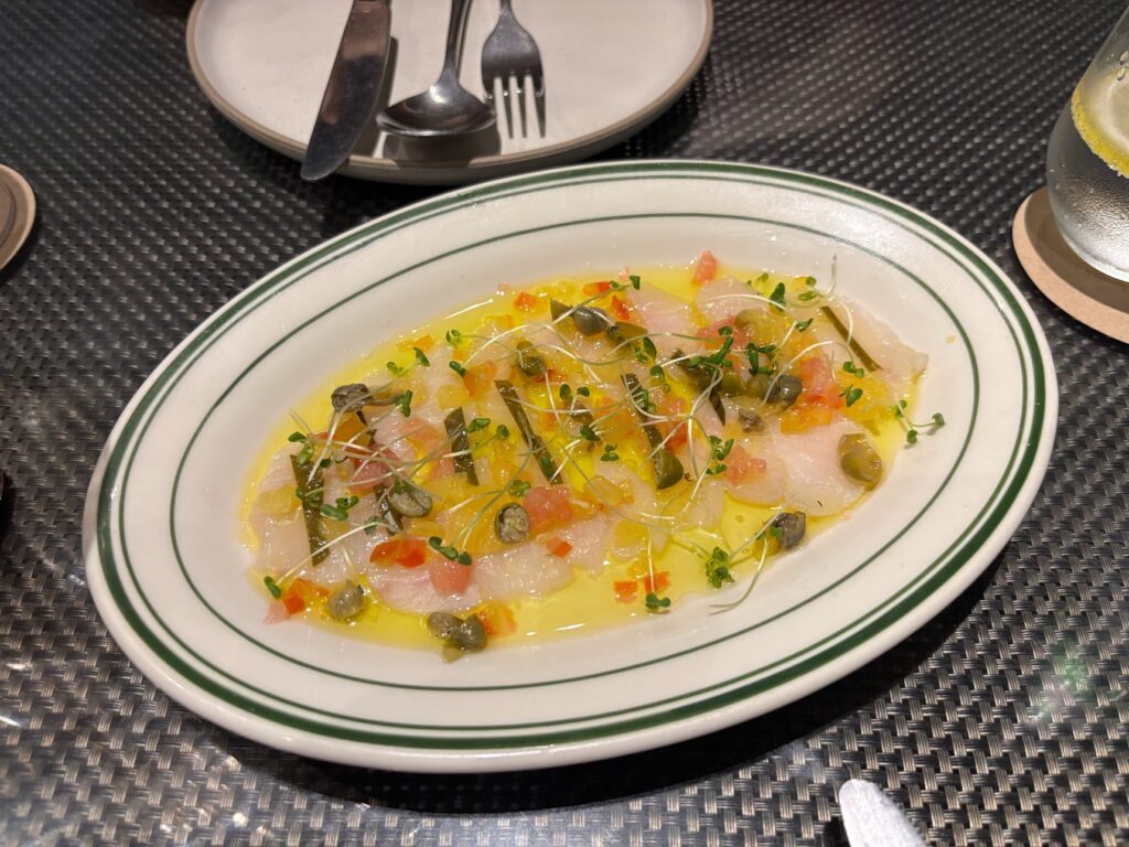Inside, a deli counter stocked with imported cheeses and cured meats sits near the entrance, with shelves of olive oils, vinegars and dried pasta lining the dining room. You can take a bag of produce home if the meal inspires. But the real surprise is the wine list, which is frankly staggering for a restaurant of this profile. Organised by Italian region with serious depth in Piedmont, Tuscany and Sardinia, it takes in Gaja Barbaresco, Ornellaia, Sassicaia and a Masseto at the top end, with Sardinian bottles from Argiolas, Capichera and Agricola Punica offering a nod to the chef’s homeland. Coravin service on the better bottles means you can drink well without committing to a full one.