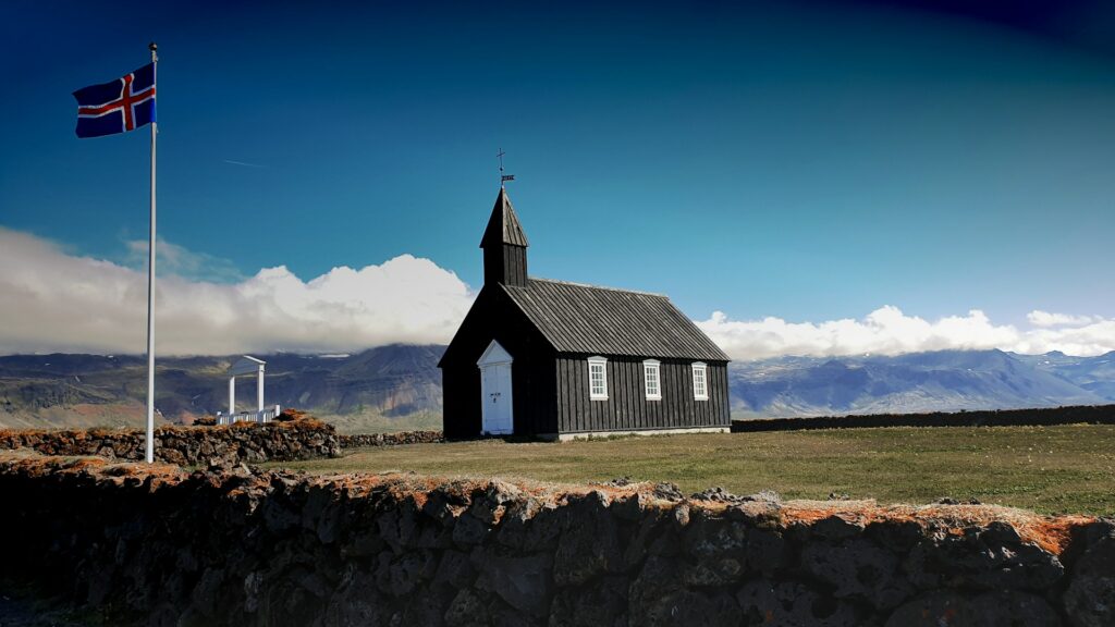 Sitting alone in a vast lava field on the southern coast, the small black church at Búðir is one of the most photographed buildings in Iceland. A church has stood on this site since 1703; the current structure dates to 1848 and was renovated in 1987. Its stark dark timber against the moss-covered rock and open sky makes for a scene that looks vaguely unreal in person.