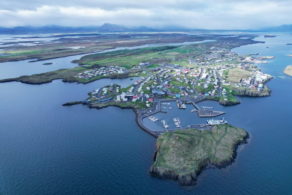 The largest town on the peninsula (population around 1,100), Stykkishólmur is worth more than a fuel stop. Its colourful harbour is lined with restored wooden houses dating back to the early 19th century, including the Norwegian House, built in 1832 and now a regional museum.