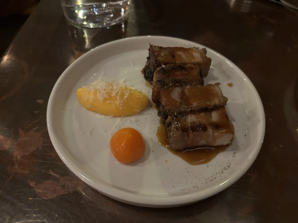 Dessert arrives in the form of a grilled croissant tiramisu, because apparently everything must pass through the flames here, and you know what? It works. The croissant adds a buttery, flaky dimension to the classic Italian pud, while retaining all those coffee-soaked, mascarpone-rich qualities you’d expect. It’s clever and actually rather delicious.