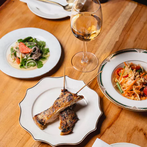 Now, the upstairs dining room has been taken over by Bangkok Diners Club, a thrilling new venture from husband and wife team Ben and Bo Humphreys, the duo behind the much-missed, Michelin-listed District. What they’re doing here is something special: fire-fuelled Thai cooking that marries Bo’s Bangkok and Isan heritage with smoky US barbecue techniques picked up during travels through Miami.